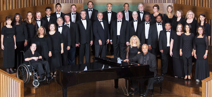 Other past performances have included “Schubert & Sherbet” with an ice cream social, and “Psalms, Spirituals, & Love Songs”. A Veterans Day program titled “American Salute” was presented in a USO Radio Show format, with patriotic selections as well as songs from WW II. Another recent spring concert included challenging choral works by Morten Lauridsen and John Rutter, and featured American Idol finalist Rickey Smith.